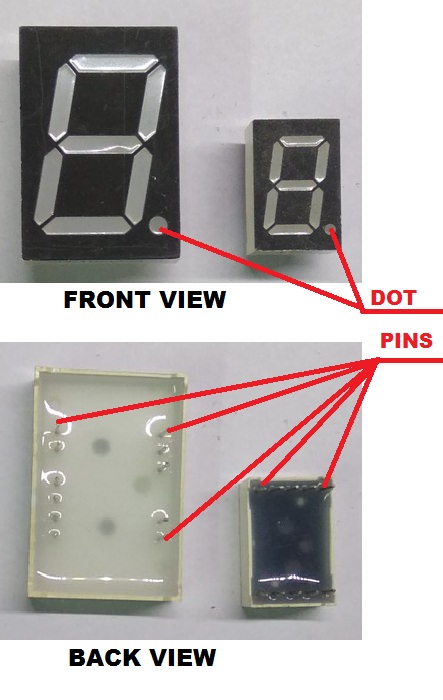 Connections and identification of seven segment are shown here for Seven Segment Display with top and bottom pins.