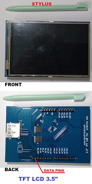 Some TFT-LCD modules have touch sensitivity with stylus and/or Micro-SD card slot. Most of the small size (upto 3.5 inch) TFT-LCD modules have pins, which are compatible (suitable) for Arduino Uno / Arduino Meaga boards. The higher sized TFT-LCD modules may have various signal input pins and slots like, USB, VGA, HDMI etc.